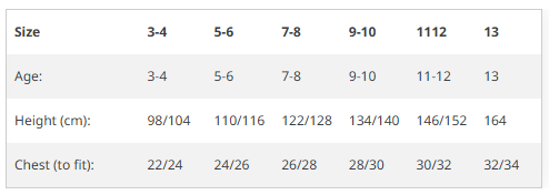 3-4, 5-6, 7-8, 9-10, 11-12, 13, XXS, XS, S, M, L, XL, XXL, XXXL